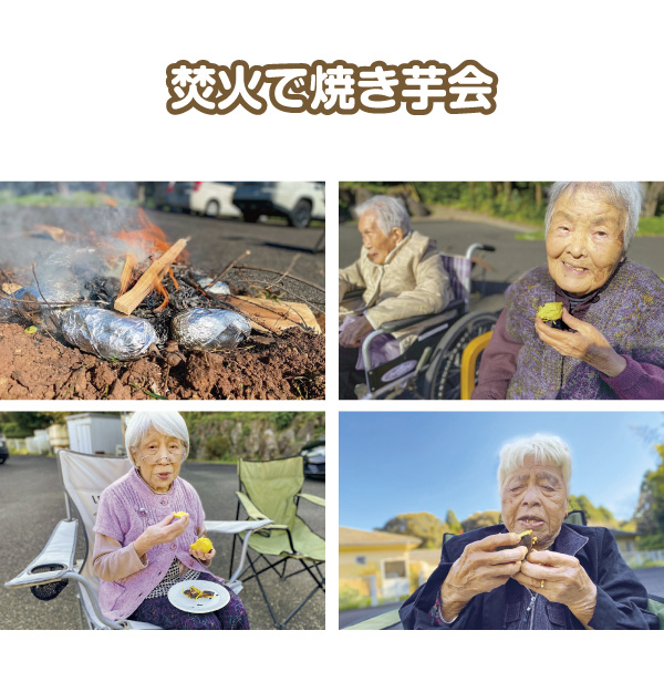 11月21日㈮に焚火で焼き芋パーティーを行いました。出来立て、アツアツの焼き芋で皆様「美味しかぁ」「甘かねぇ~」と声も聞かれ、寒い時期にはやっぱり、焼き芋ですね。